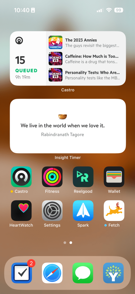 Thanks to Apple Fitness’s new custom plan feature, I also no longer need to plan out my workouts in Things each Friday as part of my weekly review. Apple does that for me, and I only need to reconfigure my plan every few weeks once the existing one expires or I decide to change my routine. (Apple, if you’re listening, please let us reuse with the same routine but using new workouts and let us edit them.)