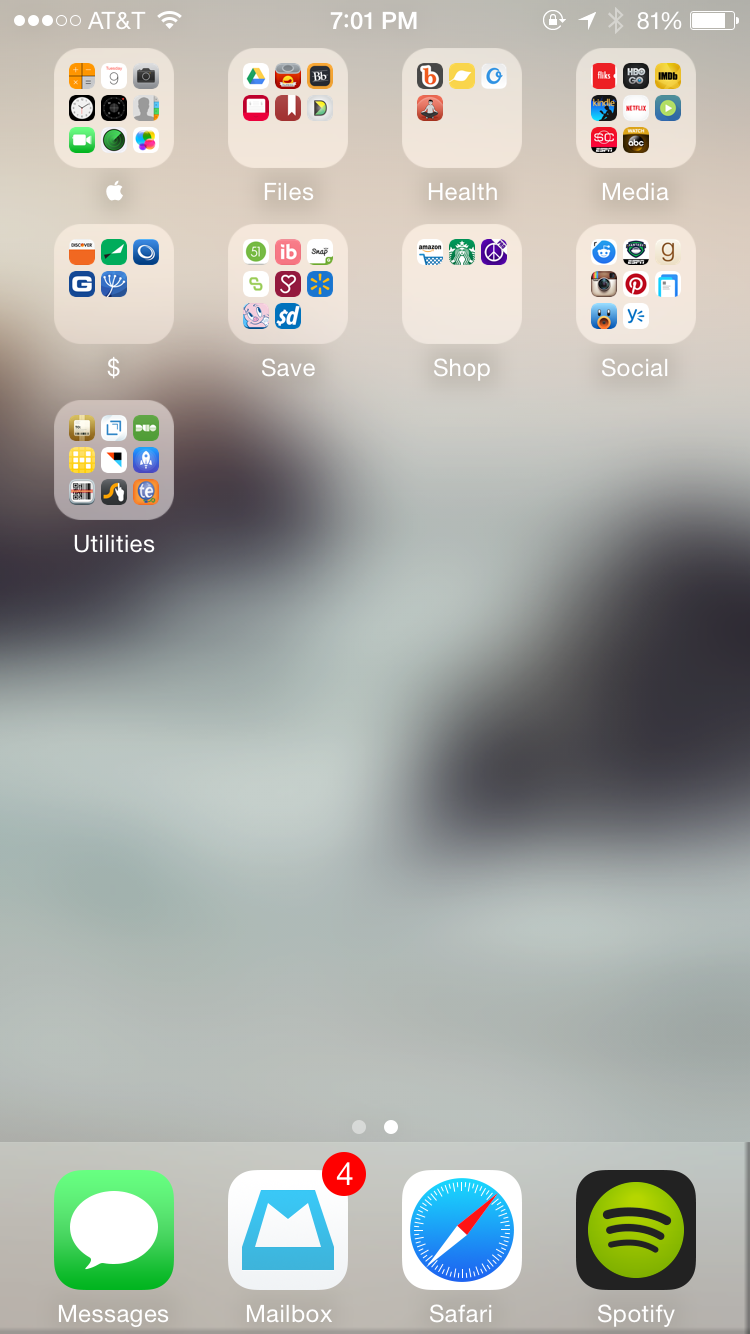- The second page of my Home Screen is for things I do regularly but don’t need or want on my main Home Screen.