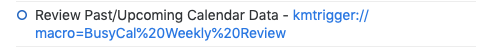 Now, honestly, at this point we have the base URL, and you could just manually create the links at this point. For example, “kmtrigger://macro=Open%20Apple%20Note&value=Work%20Ideas” would open my Work Ideas note.