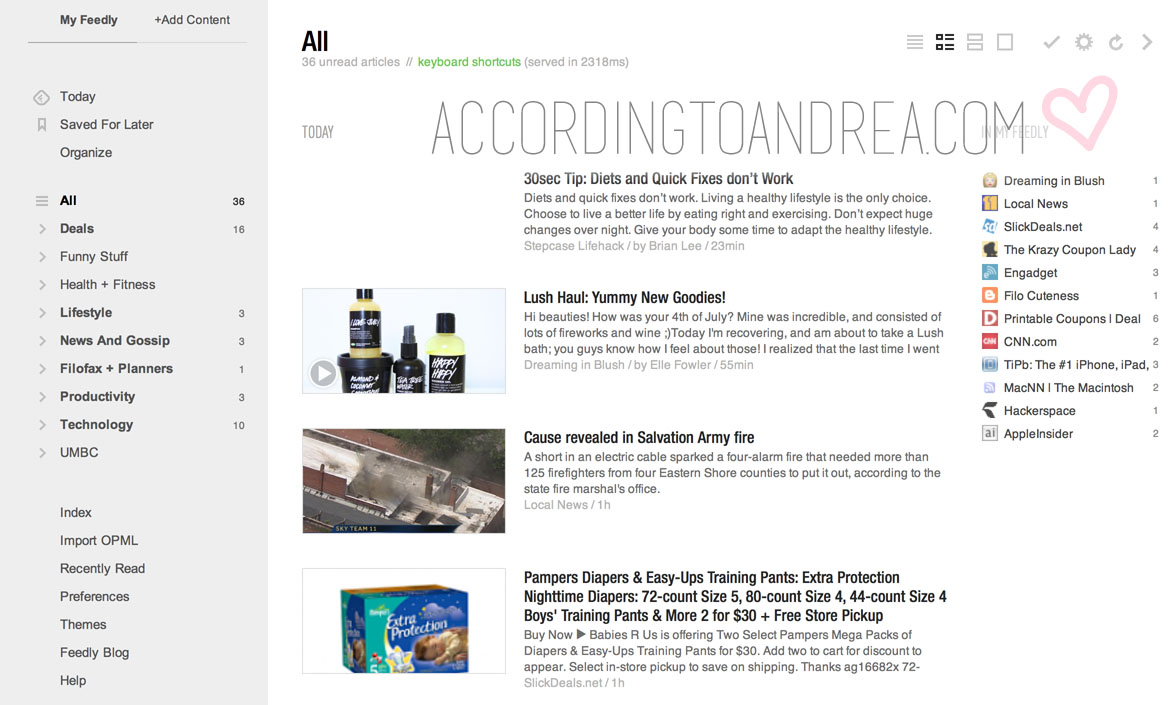 One of my more recent posts was about how I keep up with all the things I follow on the internet. My system has evolved little by little over the years, but the general concept has stayed pretty consistent. I subscribe to RSS feeds using an RSS reader and save the articles I want to read for later. Of course I’ve also managed to find some great little apps over the years to help me with this like Reeder, Feedly, and Pocket. If you missed how I’m using them, check out the article I linked above.